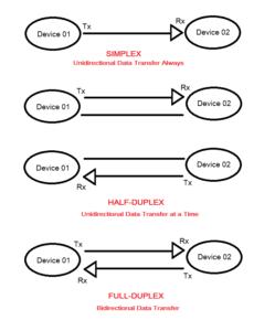 - Half-duplex: when the data can be sent and received between the devices, but not at the same time